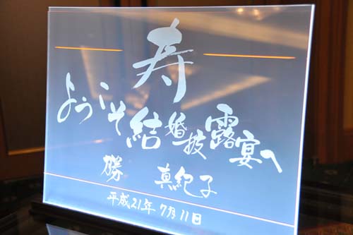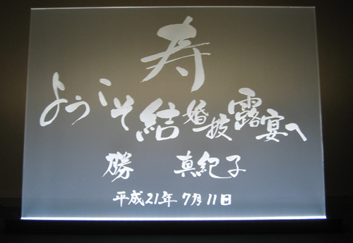 T様からのご注文は、アクリルボードに文字を彫ってウェルカムボードを作りたい。