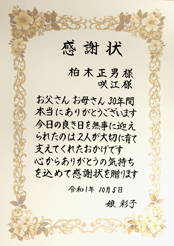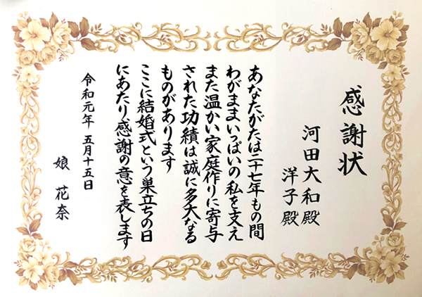 ご両親への感謝状
